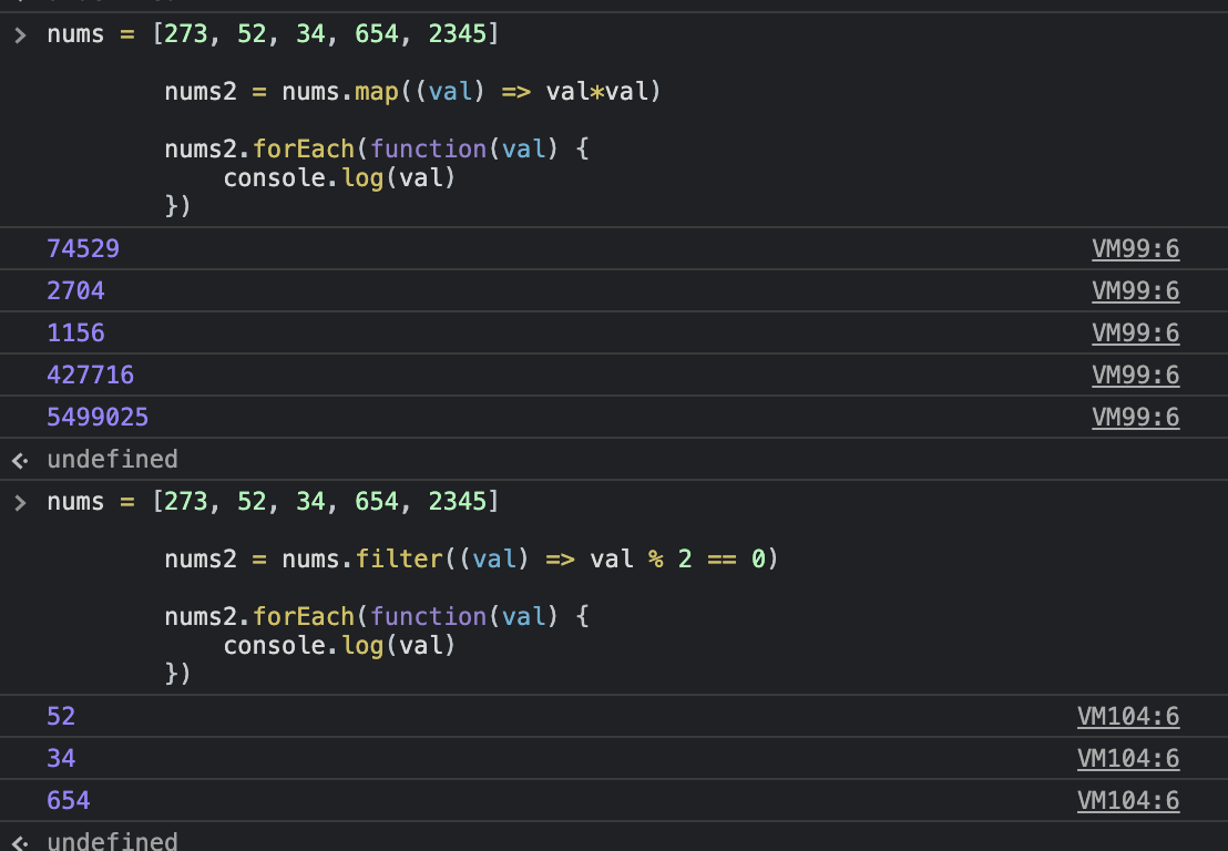 forEach()는 해당 배열의 원소들을 매개변수로 받은 함수 안에 넣은 후 리턴해 준다.