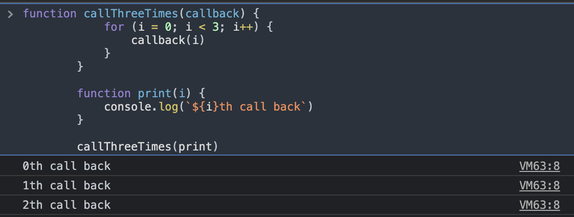 자바스크립트에서는 함수도 하나의 자료형이므로 매개변수로 전달할 수 있다. 이렇게 매개변수로 전달하는 함수를 콜백함수라 한다.