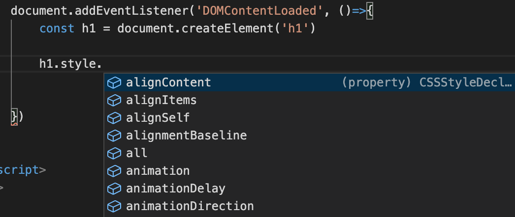 document.addEventListener('DOMContentLoaded', () => {})는 앞으로 나오는 대부분의 코드에서 사용된다. 이 코드는 document라는 문서객체의 DOMContentLoaded 이벤트가 발생했을 때, 매개변수로 지정한 콜백함수를 실행하라는 의미다.