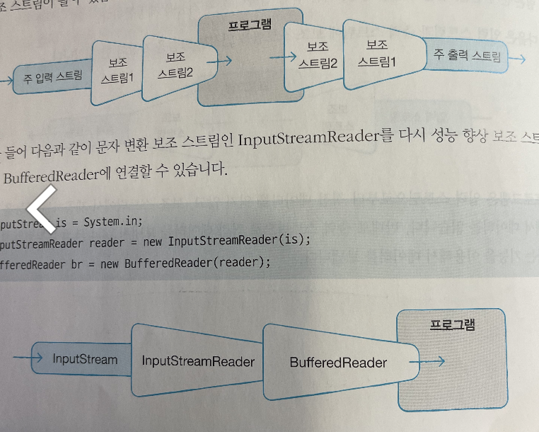 또한 보조 스트림의 생성자 매개값은 기본 스트림 이외에 또 다른 보조 스트림이 될 수 있습니다. 이 말은 보조 스트림을 연속적으로 연결할 수 있다는 것입니다.